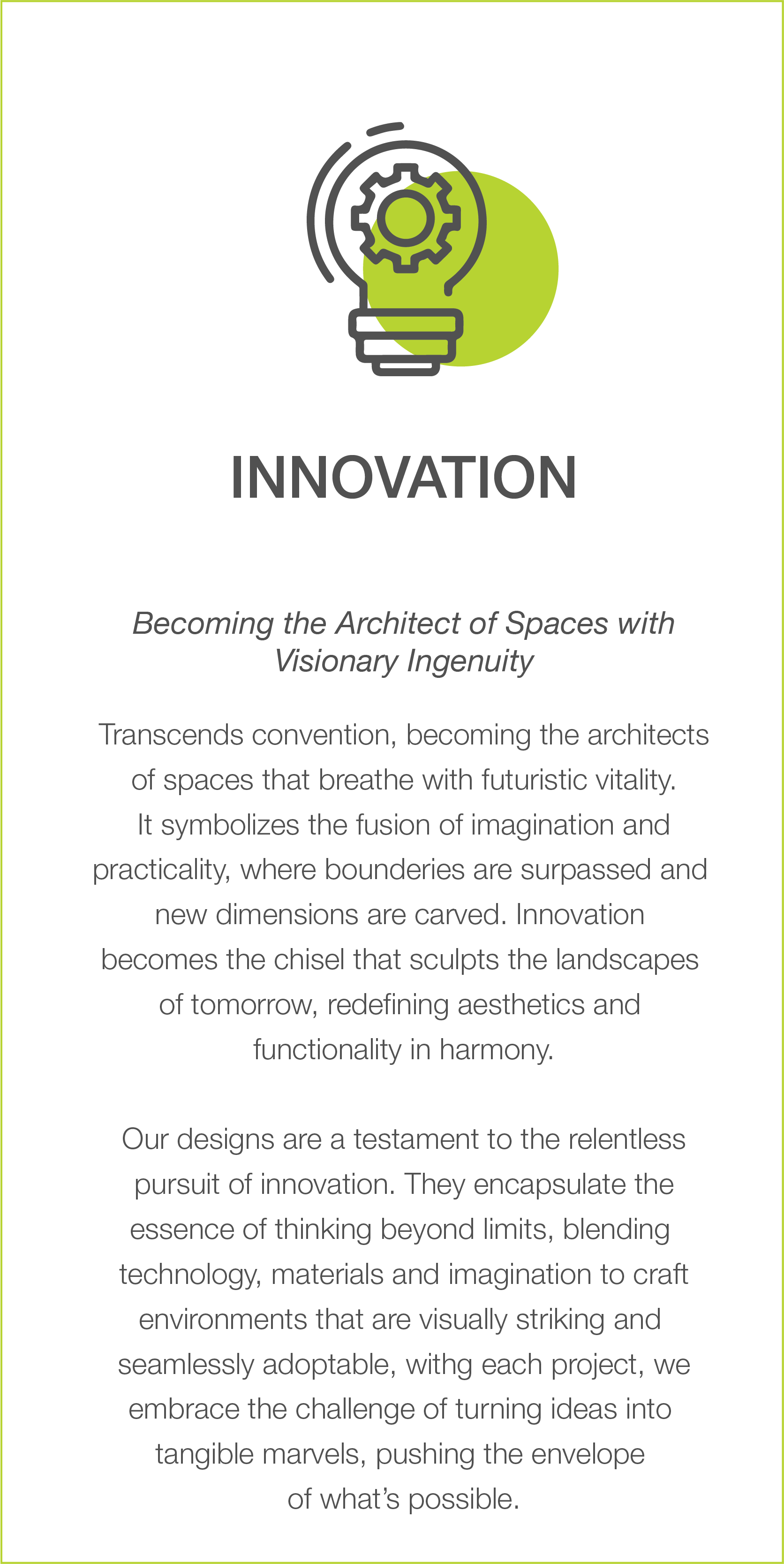 As we reinvigorate our presence in Dubai, we are driven by a vision to design dreams and redefine spaces. Owned by a licensed architect, our company is poised to lead the industry once again by infusing innovation, creativity, and sustainability into everything we do. We are more than just designers; we are creators of experiences that transcend the boundaries of design.